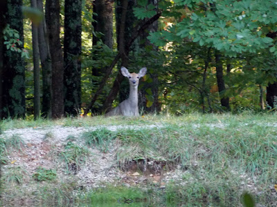 Guess what???? Yep, you're right more deer. I was driving up the trail towards the road and I was talking to our daughter, Lindsay, on the cell phone when I looked to my left and there stood a deer just staring at me. I don't know who was more shocked me or her :)
